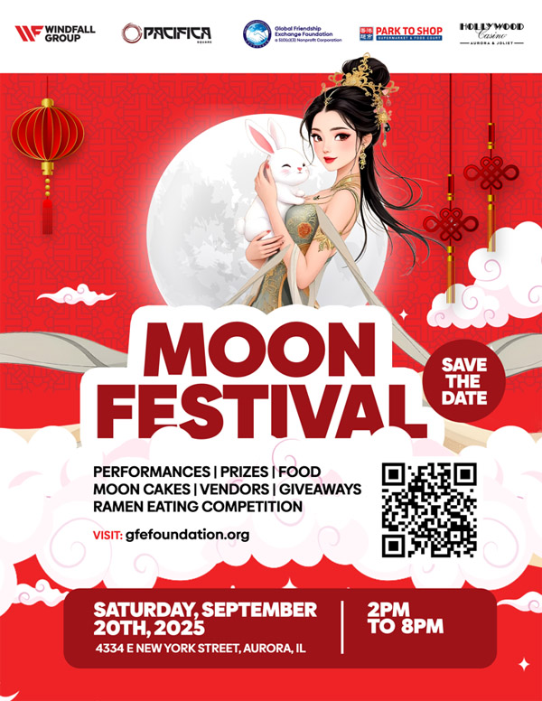 【芝加哥侨学网讯】正值芝加哥初秋最美的季节,由联丰集团太古广场、香港超市,全球友谊交流基金会共同主办的一年一度的太古广场中秋节庆典,将于本周六(9月20日)下午2点在西郊奥罗拉的太古广场闪亮登场!