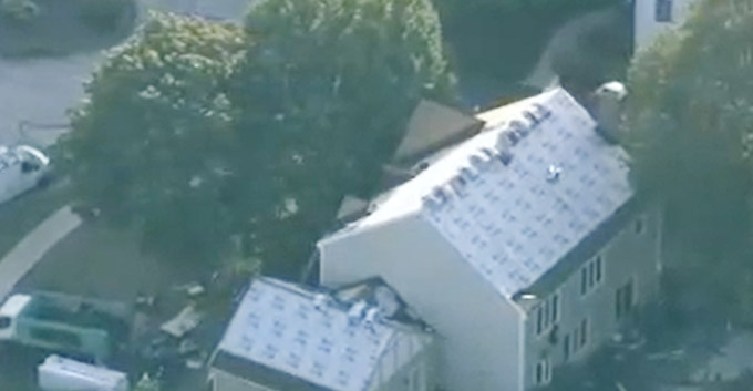 9月17日,芝加哥西郊Naperville市,民宅房顶都揭开了,换房顶的工人却被ICE抓走了