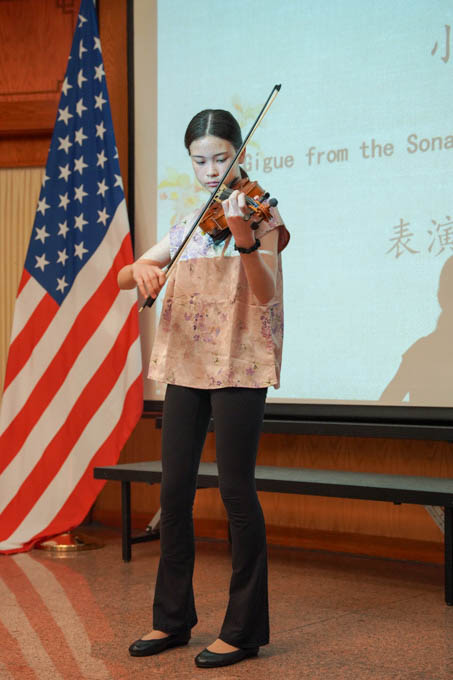 颁奖典礼尾声,华裔青少年们献上了精彩的文艺表演。独唱《如愿》深情动人,小提琴独奏旋律悠扬,《送你一朵小红花》诗朗诵情感真挚。在动人的音乐与掌声中,本次颁奖典礼圆满落下帷幕。