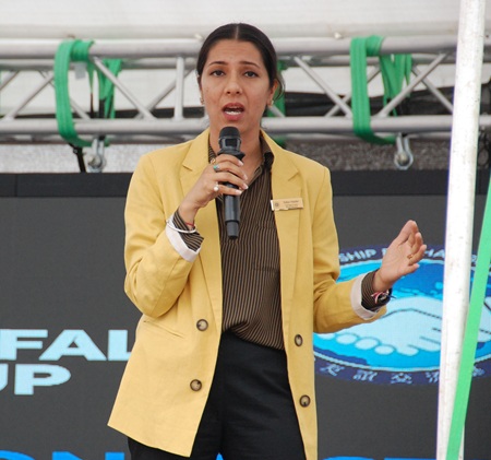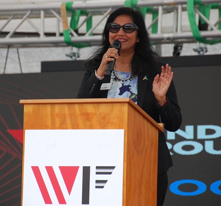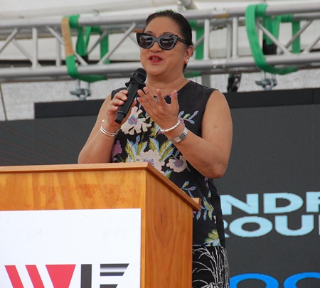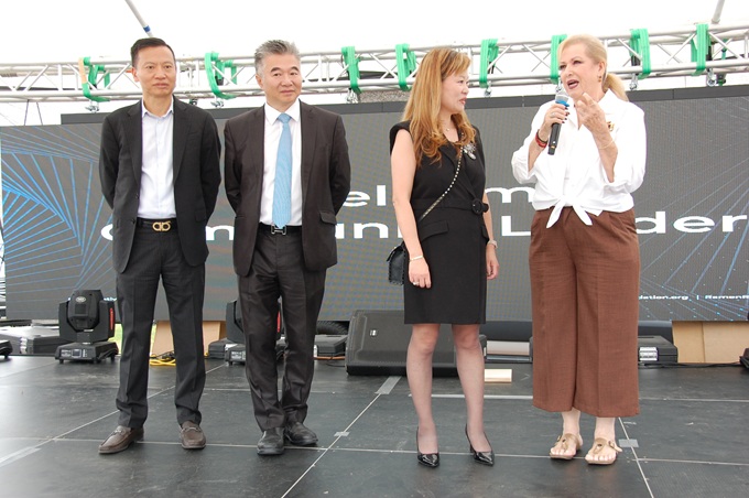 联丰集团首席运营官郑征(右二)邀请奥罗拉市议员Juany Garza(右)致辞