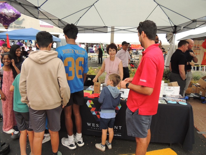政界、商界、侨界搭设展位,展出各种产品和服务,并有各种互动游戏,深受群众欢迎。