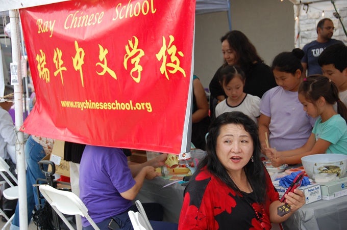 瑞华中文学校展位,教孩子们书法、筷子等传统文化