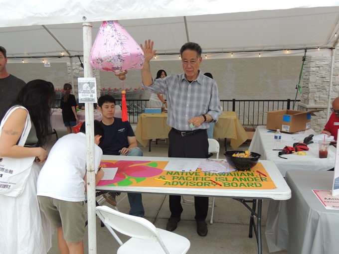 奥罗拉市亚太裔顾问委员会主席Ralph Yamamoto讲到自己代表13个亚裔社区参加太古广场中秋节庆典。亚太裔顾问委员会致力于在商业、教育等方面为亚裔争取平等权利。各亚裔社区重视教育、文化、传承,亚裔的价值观代代相传。