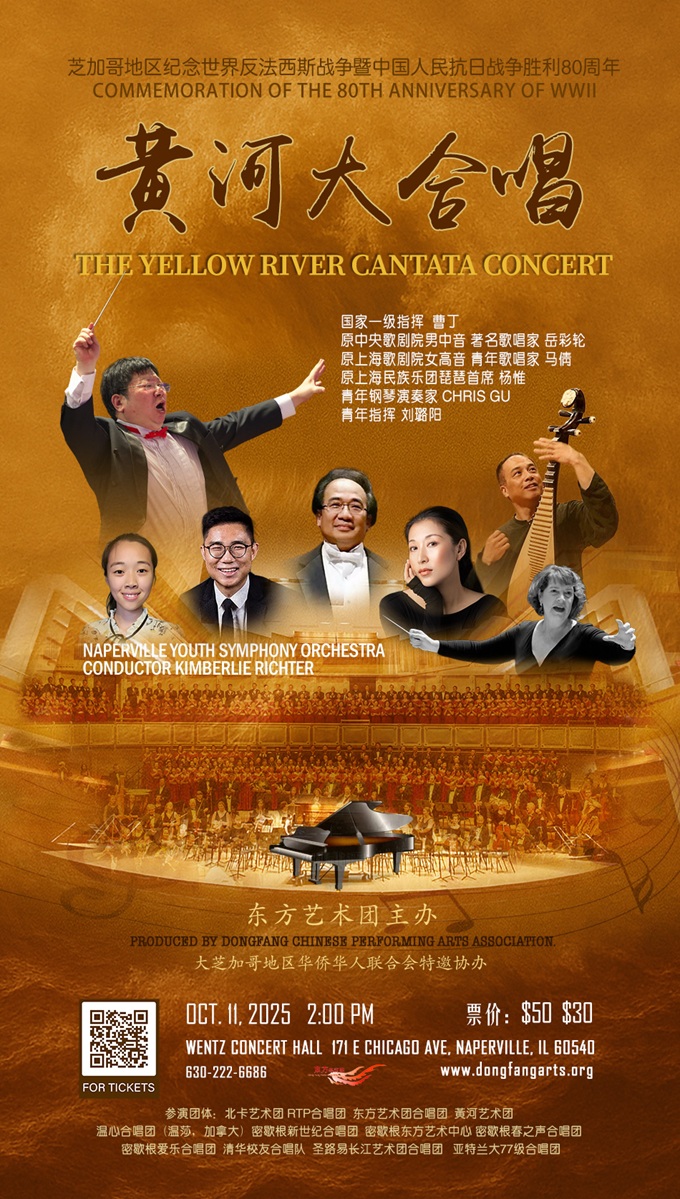 【芝加哥侨学网讯】 2025年10月11日下午2:00,一场充满纪念意义与艺术高度的音乐盛典——V80《黄河大合唱》纪念音乐会将于芝加哥Naperville的Wentz音乐厅震撼上演。届时,来自美加地区的三百余位艺术家和演员将齐聚一堂,共同纪念世界反法西斯战争胜利暨中国人民抗日战争胜利80周年。
