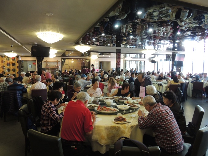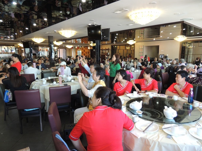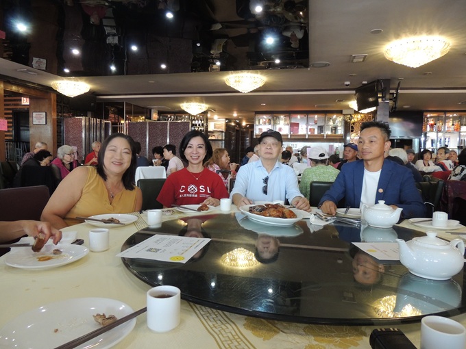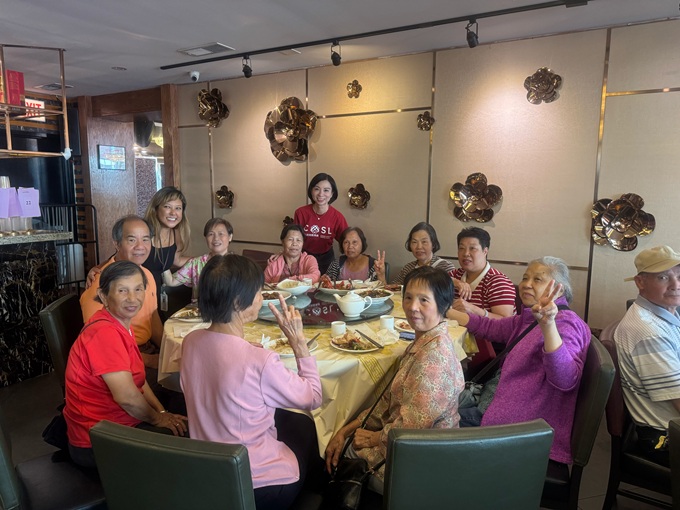 华谘处社区事务总监及松年中心主任徐婕雯、华咨处市场部副总裁何诗渲与各桌老人合影