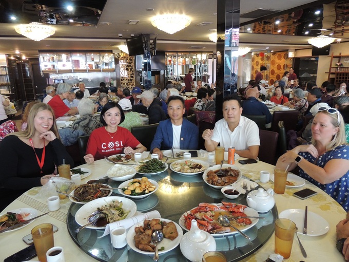 华咨处职员合影,左起,华咨处社区事务总监徐婕雯、影响与宣传副总裁Thy Nguyen、市场部副总裁何诗渲(Annie)、计划战略高级副总裁Karina Kidder, 市场和交流主任Fareine Suarez