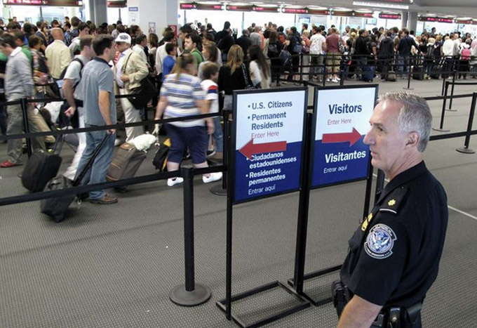 该男子之前返美入境都顺利。图为O'Hare机场入境排队人群