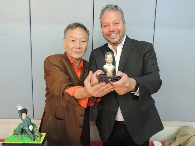 面塑雕塑艺术家张桐人向校长Roderick Shaw赠送其面塑写真半身塑像