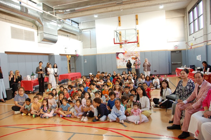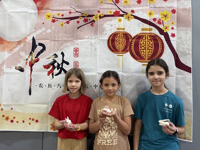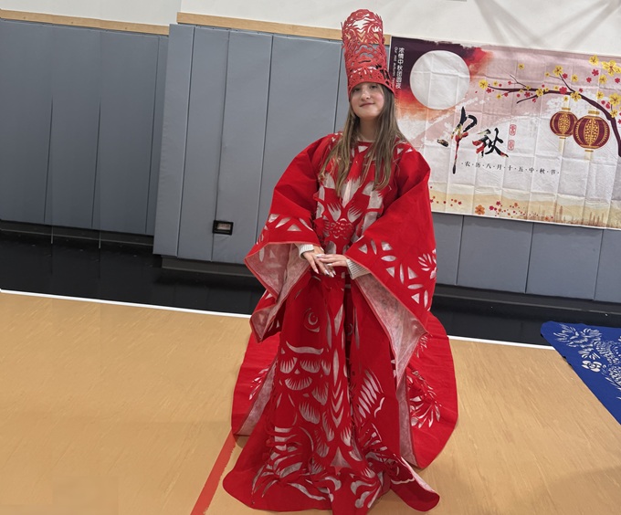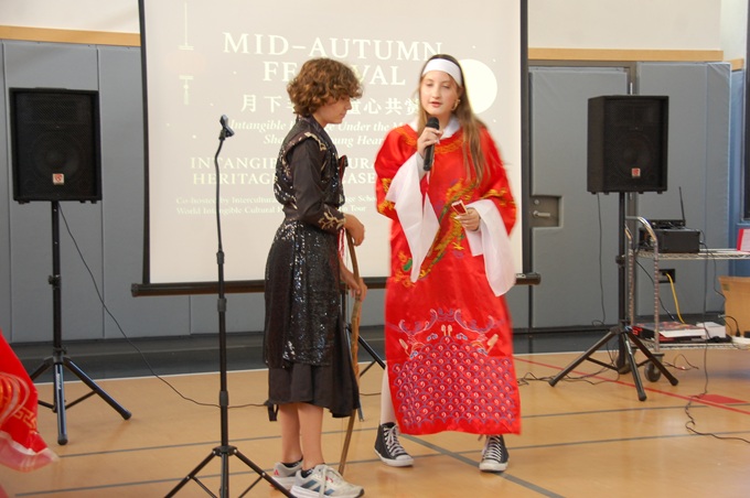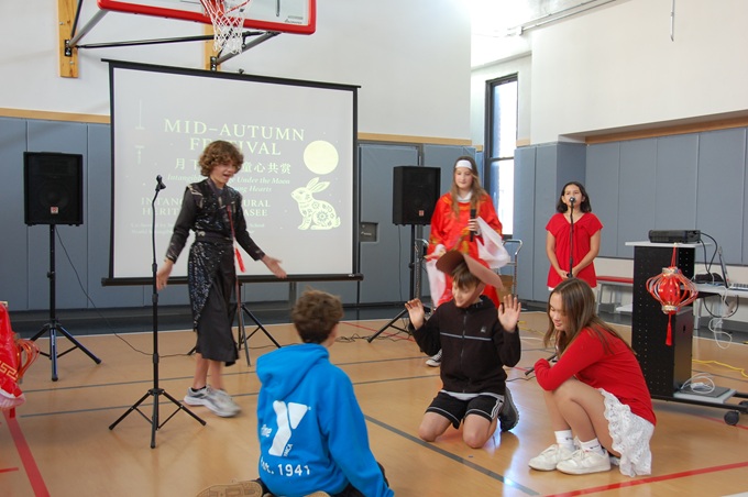 蒙特梭利跨文化语言学校的学生们自己编排节目讲述有关中秋节起源的后羿射日和嫦娥奔月的故事。