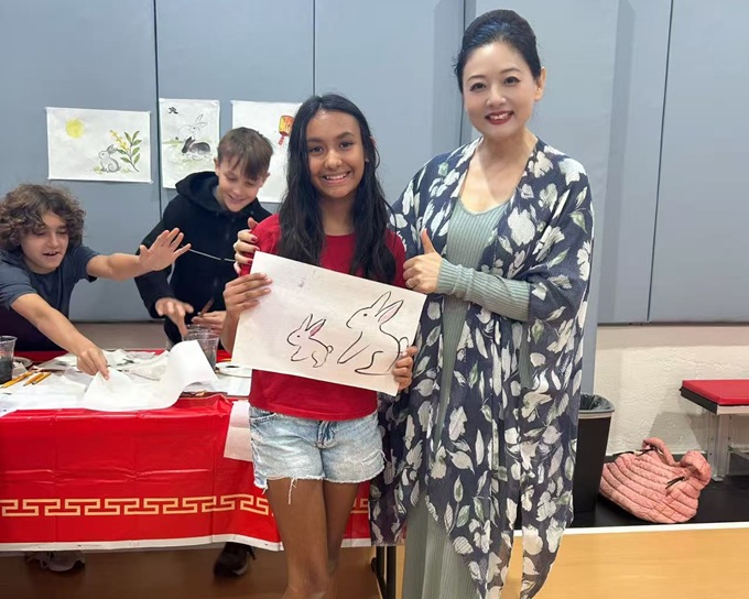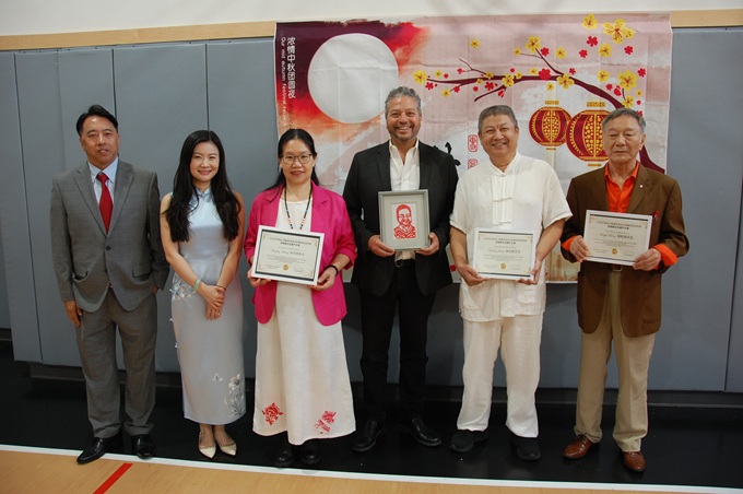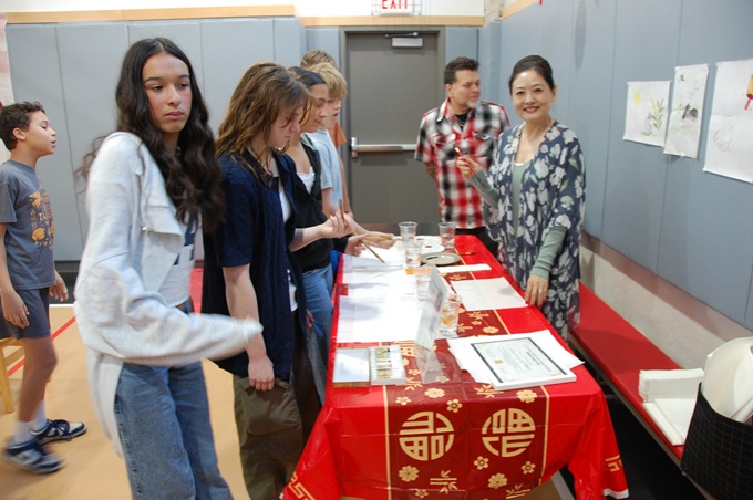 美中文化艺术中心的艺术家张立萍、做了精彩的国画表演,并教学生学生画国画。国画家张立萍从小师从国画大师,国画技艺精湛,其作品在世界各地展览,并被各国收藏家收藏。