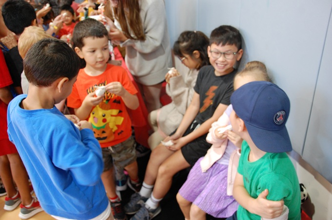蒙特梭利校长Roderick Shaw强调中秋节是有三千年历史的重要中国节日。就像美国的感恩节,中秋节也是家庭团聚的时刻,大家欣赏圆月,庆祝丰收和繁荣。今天的庆中秋活动,让大家熟悉剪纸、糖塑、书法、国画等中国传统艺术,希望能帮助人们更好地喜爱中国传统文化和艺术。
