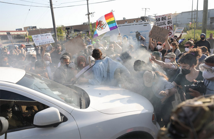 芝加哥西郊ICE拘押中心,示威民众试图阻碍联邦执法车辆