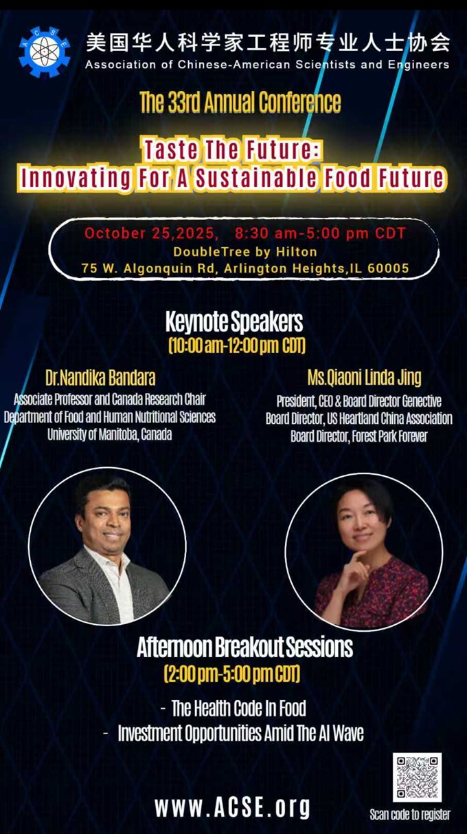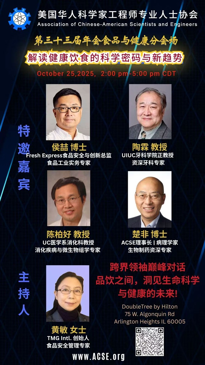 【芝加哥侨学网讯】第33届美国华人科学家工程师专业人士协会(ACSE)年会,“ 民以食为天、科技以人为本”。