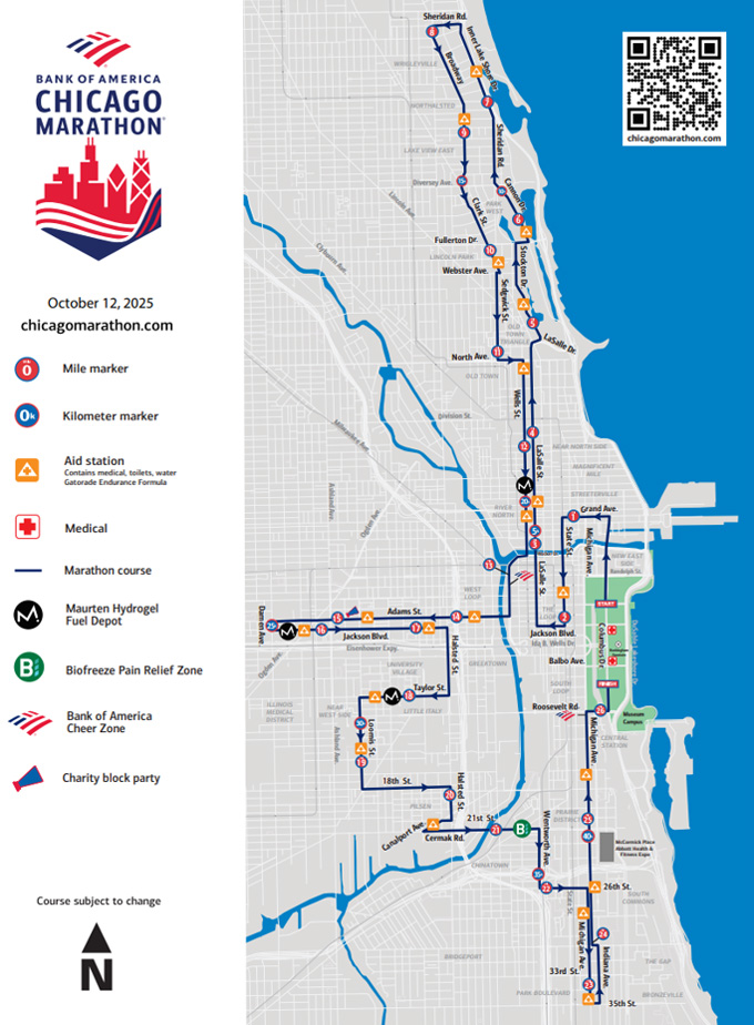 本周日赛事当天,北至Sheridan街、西至Damen大道、南至35街,赛事路线沿途将从周日清晨1时起禁止街边停车,清晨6时起关闭,直到下午4时才会陆续恢复通车,所有路段恢复通车与将为下午6时。