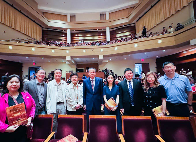 各界来宾合影,右一为美中文化艺术中心主席何达权、右二为湖北同乡会会长王炎