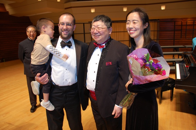 左起,演员阿历克斯·弗瑞兹、曹丁指挥、刘璐阳指挥合影