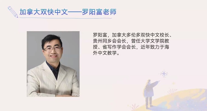 加拿大双快中文学校校长罗阳富讲到,“阳光杯”创意作文大赛已成功举办四届,影响力与吸引力持续增强,特色愈加鲜明。大赛始终秉持公益初心,坚持免费参赛并设立奖金,吸引了全球众多优秀学子踊跃参与。期待未来能与各参赛中文学校的同仁们加强交流、互相学习,携手推动海外中文教育不断向前发展。