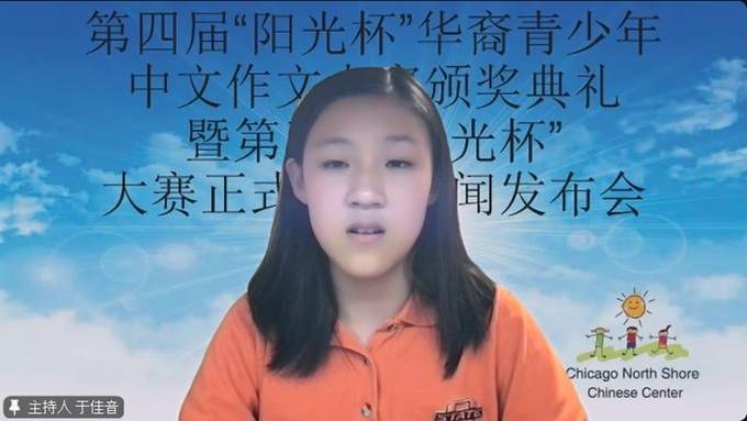 【芝加哥侨学网记者王坚报道】10月11日,芝北中文中心、阳光国际教育举办第四届“阳光杯”华裔青少年中文作文大赛颁奖典礼,暨第五届“阳光杯”大赛正式启动新闻发布会。 “阳光杯”华裔青少年创意作文大赛是阳光国际教育一大品牌,参加比赛的学生来自世界各地的中文学校。由美国各地的中学生担任主持。