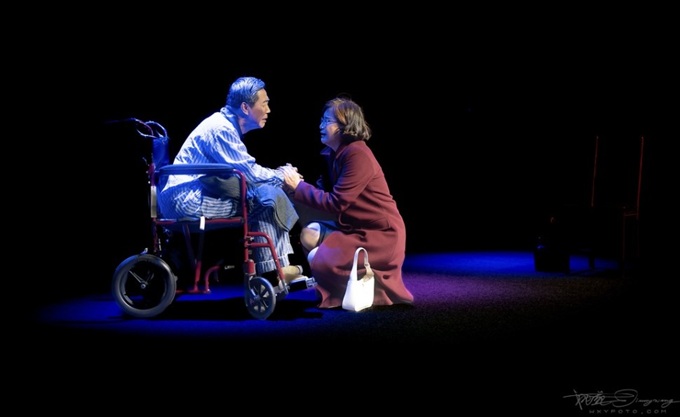 王坚和李莉饰演“暗恋”中的江滨柳与云之凡。战乱中失散多年,重逢时已是两鬓斑白,两位演员在年龄跨度如此之大的表演中,分寸适中,拿捏得当,让岁月和历史的重量在云淡风轻的对白中缓缓流淌。那份平静中的酸楚、克制中的深情,使整个舞台弥漫着淡淡的苍凉。最终的情感爆发震撼人心,观众被深深触动。悠悠饰演的护士天真可爱、善良温柔,自然流畅的表演为沉郁的剧情注入了一缕阳光,让这段悲情的故事多了几分温暖。