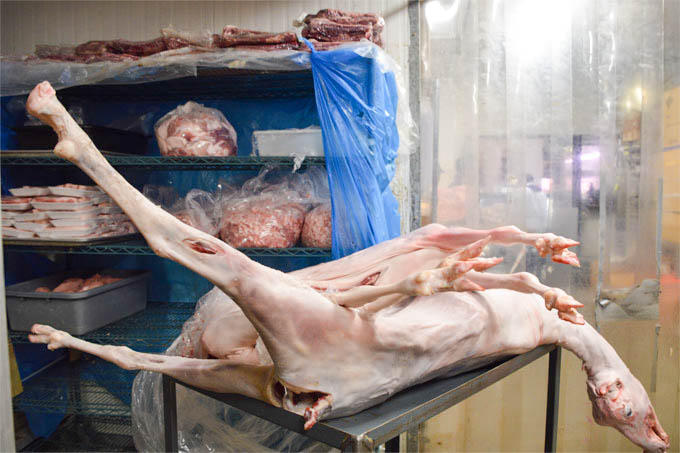 88超市每逢周二、周三、周四都会有专车前往芝加哥本地的屠宰场采购,当天宰杀的羊整只运回,再由88超市的切肉师傅们“庖丁解羊”,羊腩、羊腿、羊颈等按不同部位入柜销售。师傅还会根据您的要求进行专业切割。
