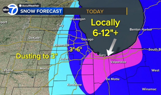 冬日风暴周一傍晚才会消退,芝加哥地区降雪3-6英寸