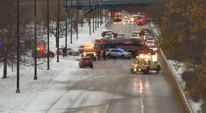 受首场冬日风暴影响,芝加哥地区20多家学校停课或转为网课,交通事故频发,湖滨大道周一早间发生五车连环撞,导致北向车道一度关闭,芝加哥两大机场航班取消与延误问题预期将更加严重。