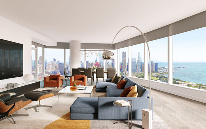 芝加哥北郊豪华公寓One Winnetka设计效果图。该公寓月租从从$7000到1.25万美元不等