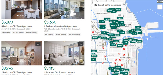 在毗邻密西根大道辉煌一英里的芝加哥河北社区(River North),豪华公寓的平均月租为$3738, 13%的涨幅则为全市最高。在河北社区的One Chicago高档公寓楼,单间公寓(Studio)月租$2700,三卧室公寓月租则已超过1.3万美元。