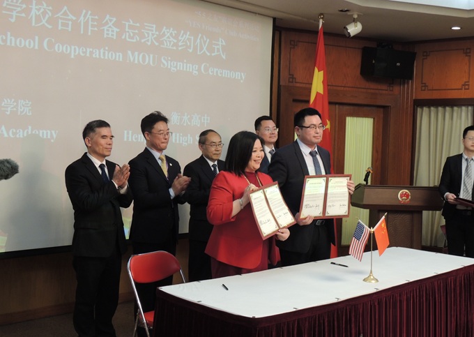 美国明尼苏达州全日制公立中文学校英华学院与中国河北省衡水中学签署谅解备忘录