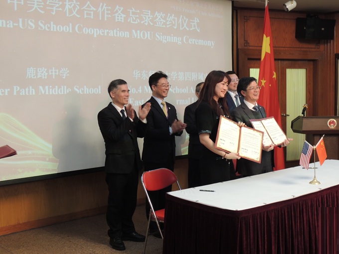 鹿路中学Deer Path Middle School与华东师范大学第四附属中学签署谅解备忘录