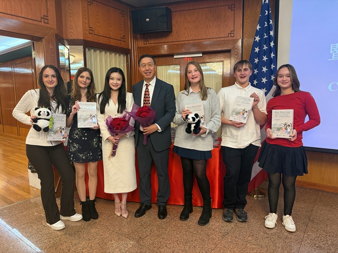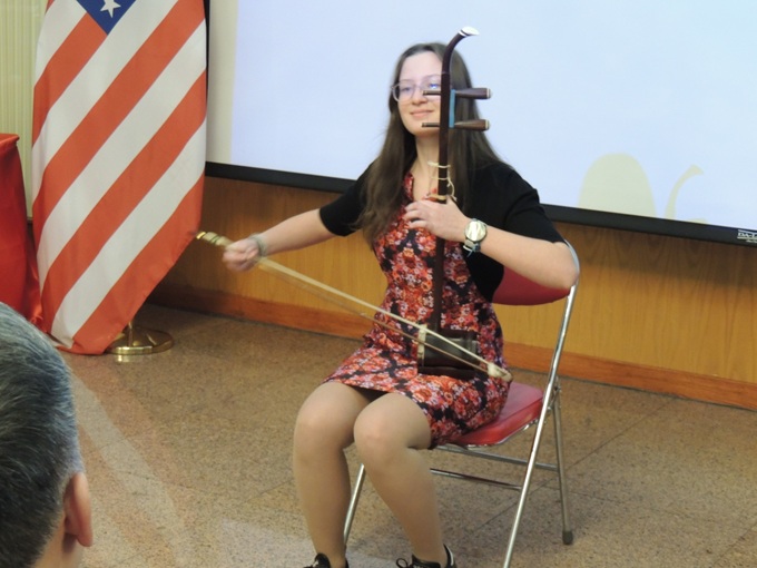 十六位中国和美国的中小学校长签署谅解备忘录,几十位美国中学生小作者领取登载自己的中国故事的新书《东西交汇》。学生们还表演中文相声,演唱中文歌曲,演奏中国传统乐器,展示了中文学习的成果和对中国文化的热爱。