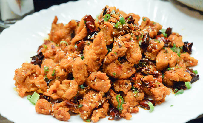 北极星的川菜份量足,这道辣子鸡丁是诚心诚意的体现,你是“在鸡块堆里找辣椒”,而不是“在辣椒堆里面找鸡块”。