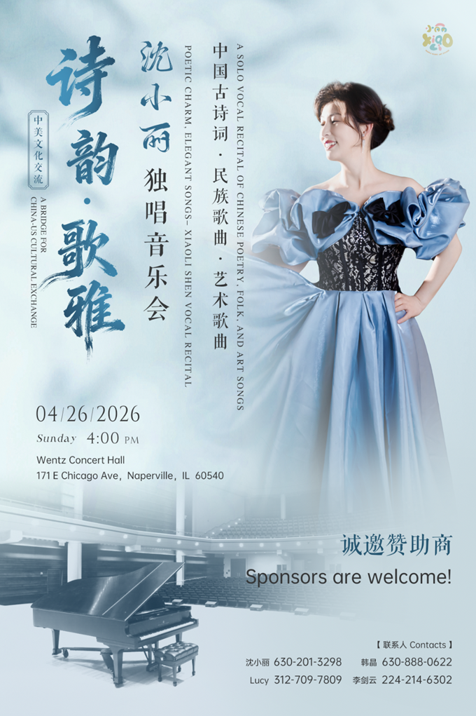 此次《诗韵·歌雅——沈小丽独唱音乐会》,是她对于学习声乐30年来的一次总结,在美国精心筹划的一场艺术盛宴。音乐会以诗为魂、以歌为韵,精选中国经典声乐作品,展现诗意东方的艺术气质与跨文化的音乐魅力,向观众传递美、真与心灵的共鸣。