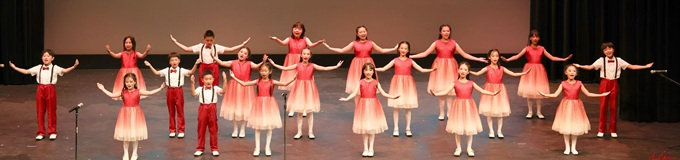 诗韵少儿合唱团在东方舞蹈团庆祝二十周年舞蹈晚会上演唱