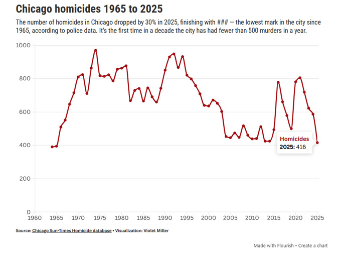 2025年芝加哥市谋杀案死亡人数仅416人,创1965年以来的最低记录