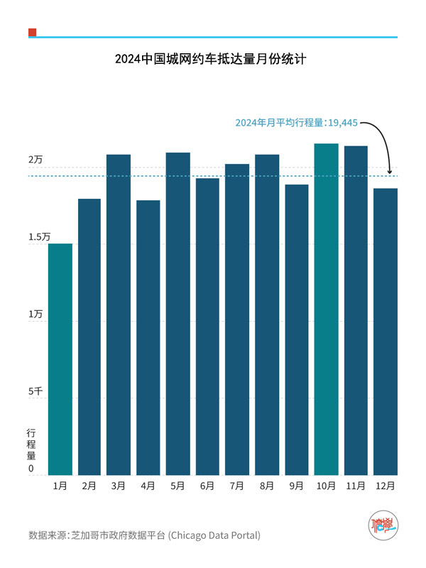 网约车抵达中国城的数量,冬季1月份明显偏低