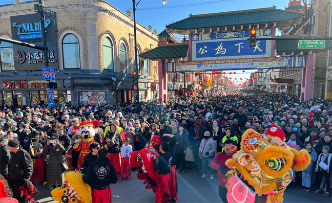 重大社区活动为中国城吸引客流,图为中国城春节游行盛况