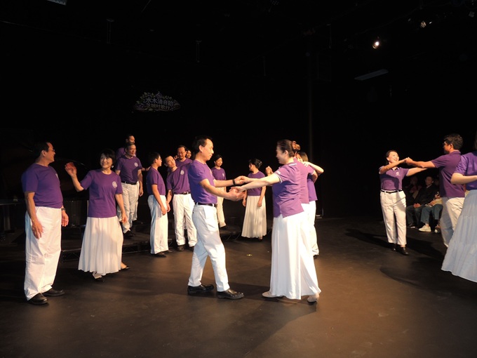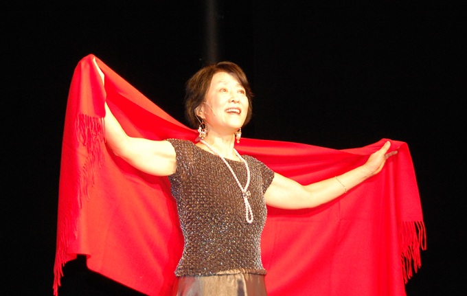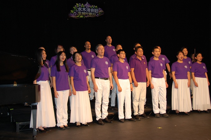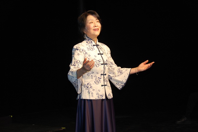 左起,叶梅琳、叶玲、梁蔚、彭薇、吴平桂演唱唐代诗人李白诗《春思》