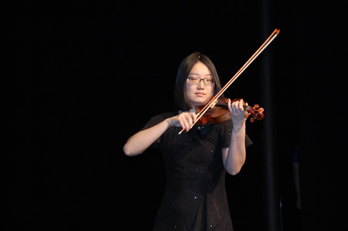 张颖然演奏小提琴曲《渔舟唱晚》,作品以舒展的旋律描绘夕阳西下、渔舟归航的画面,呈现内敛而悠远的东方意境
