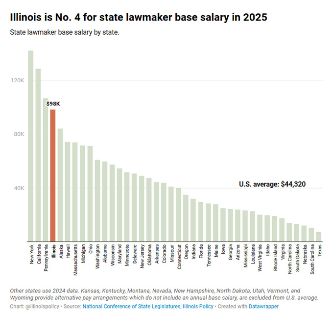 伊州州议员的薪水,全美排行第四,是全美州议员平均薪水的两倍多