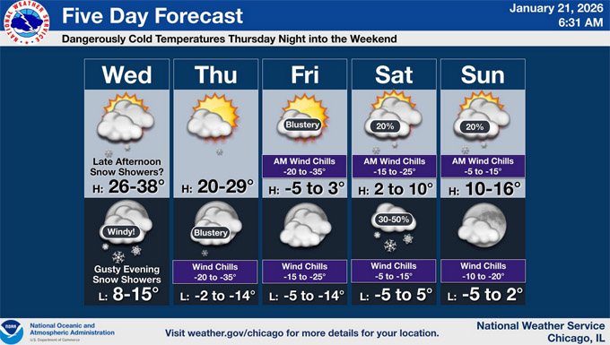 国家气象局发布针对芝加哥地区的酷寒预警,周四、周五被列为危险级别