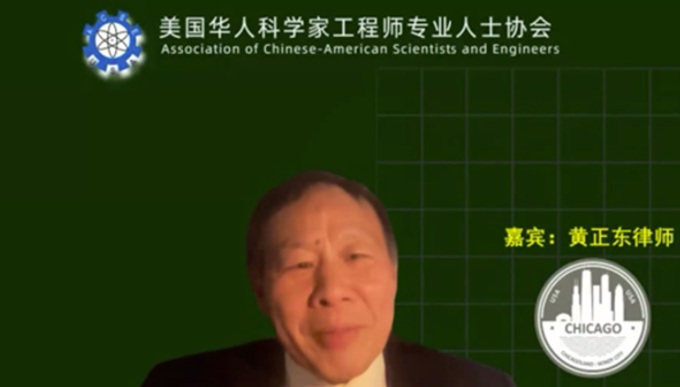 随后,主持人赵湘女士介绍了自己及嘉宾们。赵湘女士提到嘉宾黄正东律师是美国芝加哥清水正东律师事务所律师,美国诉讼律师荣誉院院士(fellow)。 获美国耶鲁大学法学硕士学位(LL.M)及法学博士学位(J.S.D.)。被列入美国Martindale-Hubbell律师名录。他曾在Keck, Mahin & Cate和Piper,Rudnick & Wolfe美国两大律师事务所从事律师工作, 并曾任美国芝加哥德保大学法学院的兼职教授, 武汉大学和上海同济大学兼职教授, 香港大学法学院的研究生校外督导员。黄正东律师连续9年被评选为伊利诺伊州超级律师(2017至2026)。曾被评选为美国卓越律师(Premier Lawyers of America, 只有1%的美国律师获选), 并获美国国会议员全球奖最佳律师奖。黄正东律师曾出版书籍及在中国和美国的法律刊物上发表法律论文、文章若干篇。他热心为华人社区服务,现在担任大芝加哥地区华侨华人联合会主席。