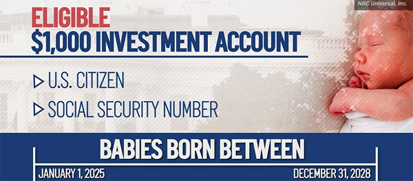 特朗普账户申请资格:要求是美国公民、有社安号,为2025年1月1日至2028年12月31日期间(特朗普第二届总统任期)出生的婴儿