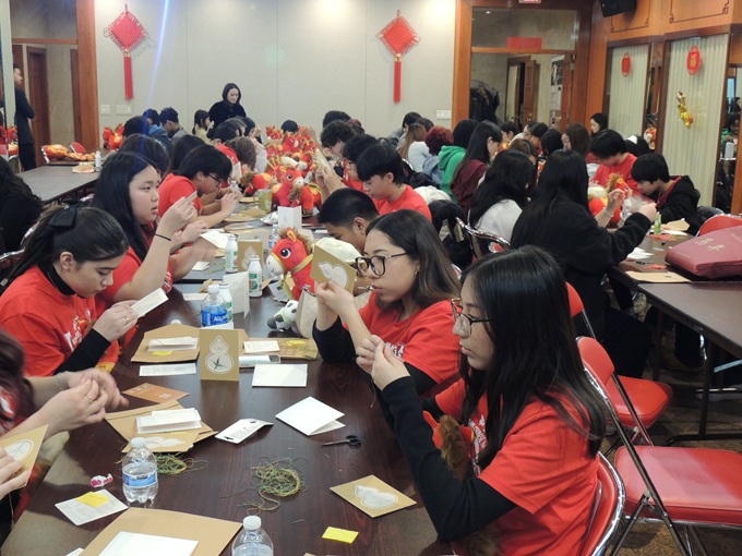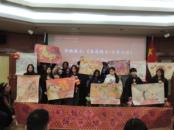 林肯公园高中学生展示中文书法和马年绘画作品