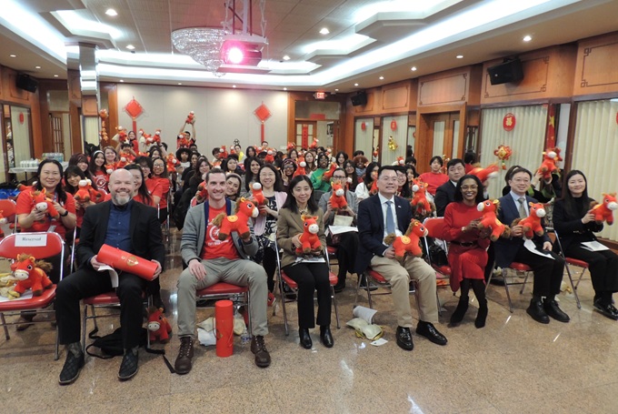 【芝加哥侨学网记者王坚报道】2月2日上午,在中国驻芝加哥总领馆,总领馆举办"55之友"春节联欢会暨"走进总领馆"活动。曾参加“5年5万"赴华交流学习的林肯公园高中Lincoln Park High School、威廉·霍华德·塔夫特高中William Howard Taft High School、威斯汀豪斯学院预备高中George Westinghouse College Prep High School的学生、中文老师、校领导等有关人员参加了活动。