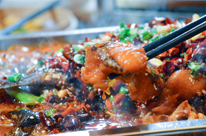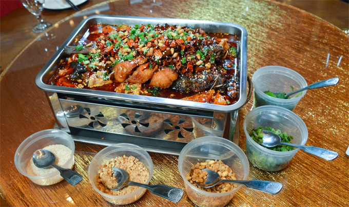回到芝加哥,我与来自四川成都的特技川菜大师杨锡辉讨论了如何在芝加哥做出地道的巫山烤鱼。我们有从四川空运而来的调味料,有新鲜的游水活鱼,有四川主厨,融汇美食寻根之旅的心得,我们在马年新春即将到来之际做出了地道的巫山烤鱼,还分麻辣、蒜香两种,辣与不辣任选。
