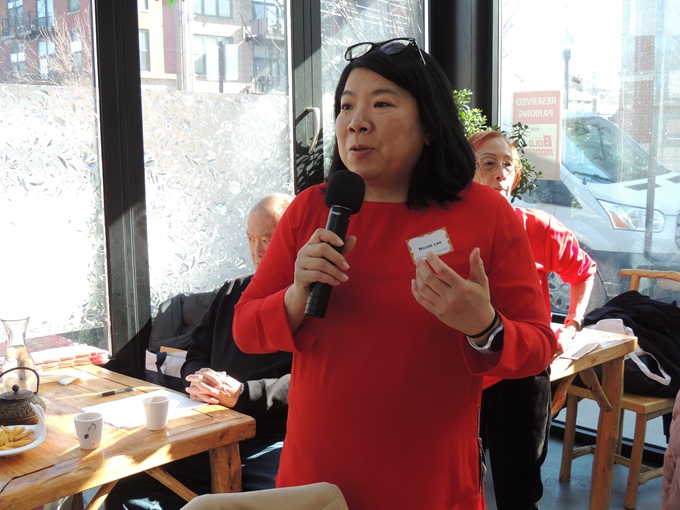 华埠特别活动委员会共同主席黄婉娴向大家介绍了马年春节游行的筹备情况。届时将有63个团体参加游行,包括9辆花车、24个游行方阵、11支鼓乐队、8个舞龙队、3个舞狮队。