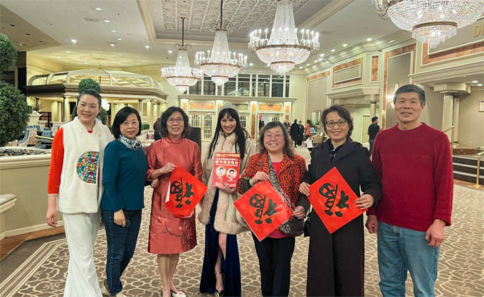 各界来宾与许秋怡、王书麒合影,右一为Horseshoe Casino亚裔市场主任Karen Lu