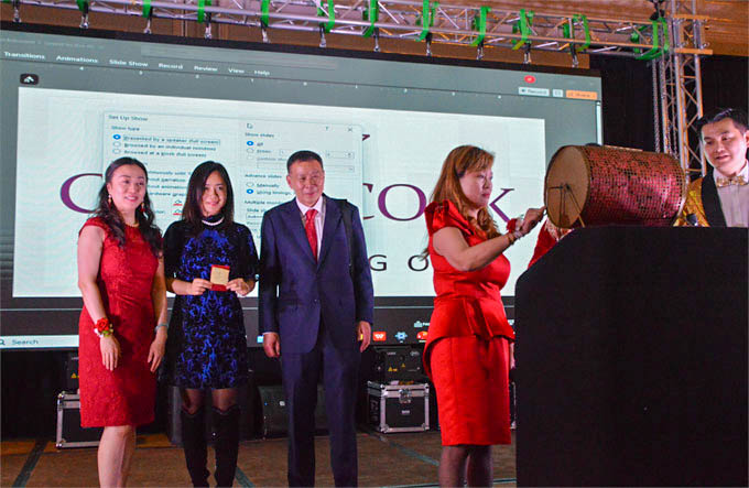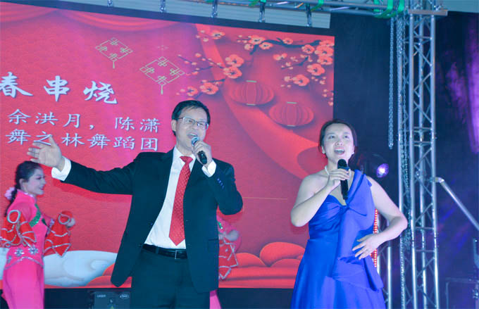 许秋怡与本地贵宾陈健明董事长(左)同台献艺