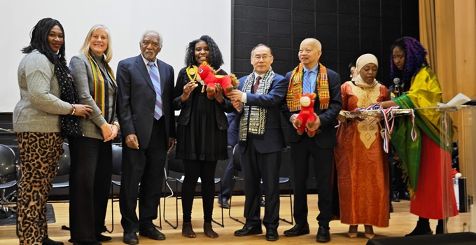 【芝加哥侨学网讯】芝加哥著名非裔诗人费斯·杰克逊(Faith Jasksong)2月21日在英格伍德社区中心(Center of Englewood)举办“黑人历史月”庆祝活动,各界政要嘉宾在庆祝非裔传统文化的同时,也恭贺中国新年,并向芝加哥知名侨领马森柱颁发“杰出华裔美国人”奖,表彰马森柱先生多年来为芝加哥少数族裔社区所作出的杰出贡献。